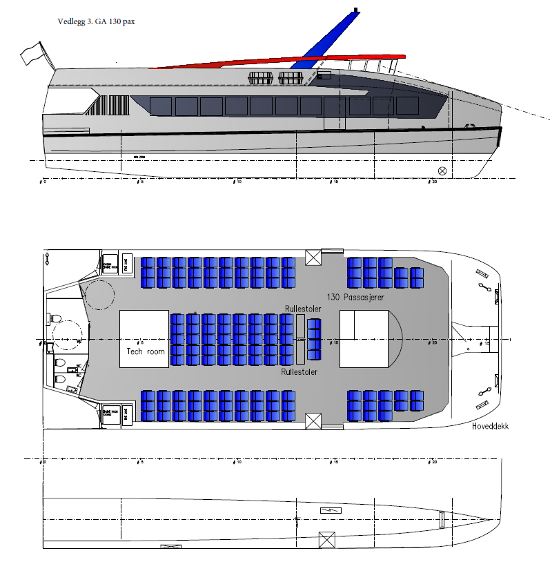 Three different vessel have been specified carrying 130, 145, and 190 passengers
